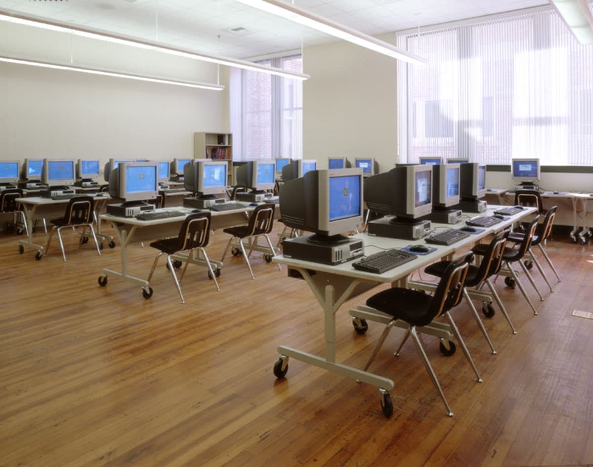 Approximately 80% of the school’s three story interior was replaced. All interior plaster was removed and replaced with drywall. Terrazzo floors were repaired and hardwood floors were repaired and refinished. Doors and door frames were refinished and all windows were replaced.