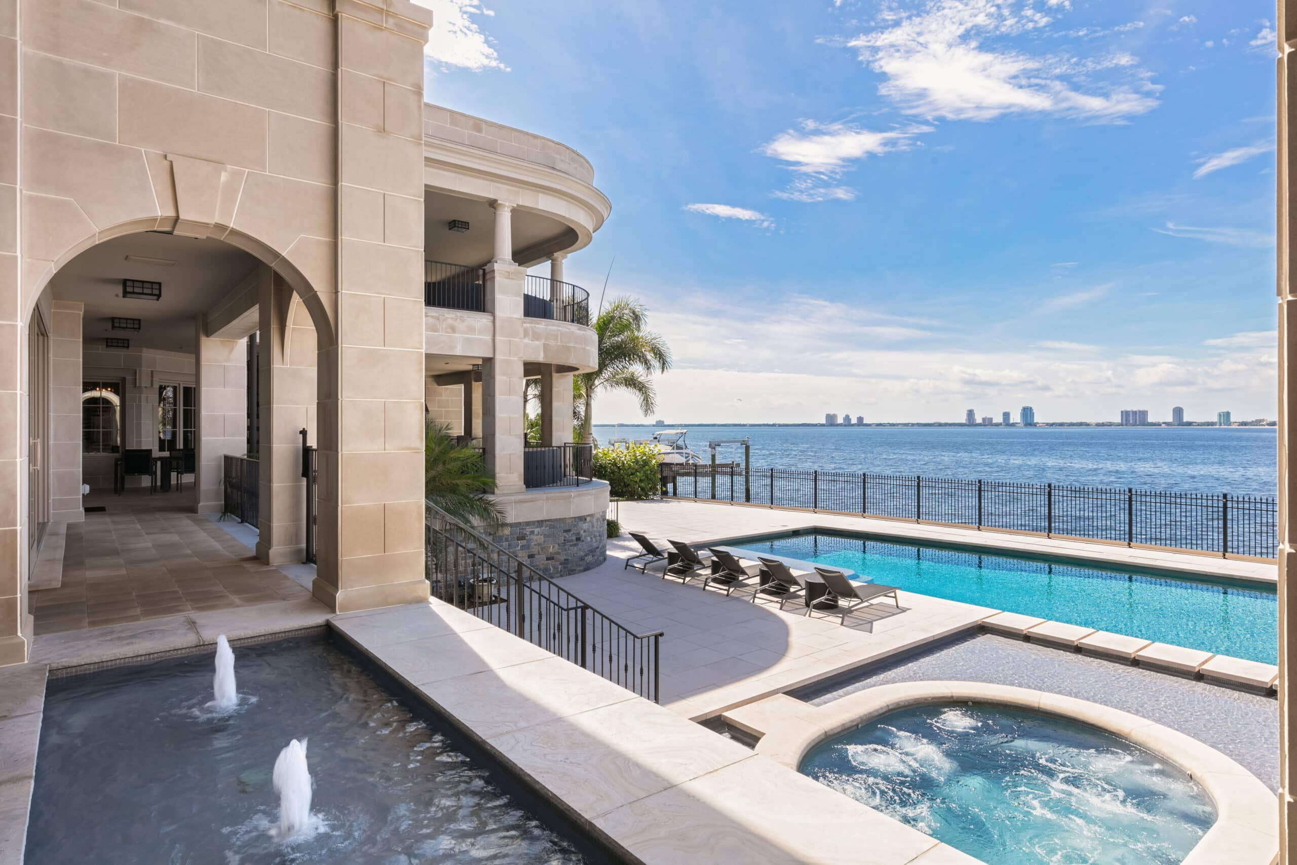 With exterior walls beautifully clad in granite and limestone, this grand home on Davis Islands combines craftsmanship with breathtaking views of Hillsboro Bay.