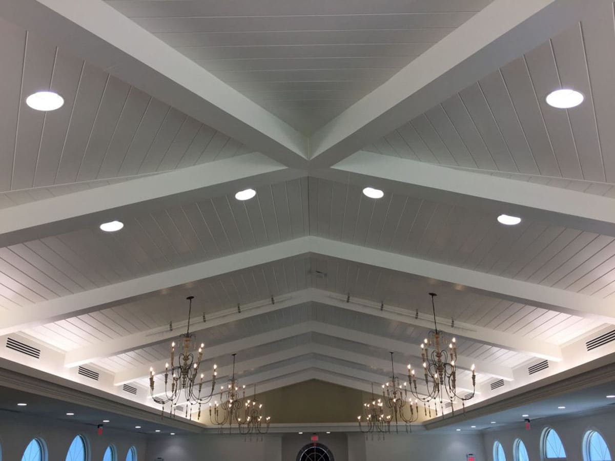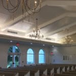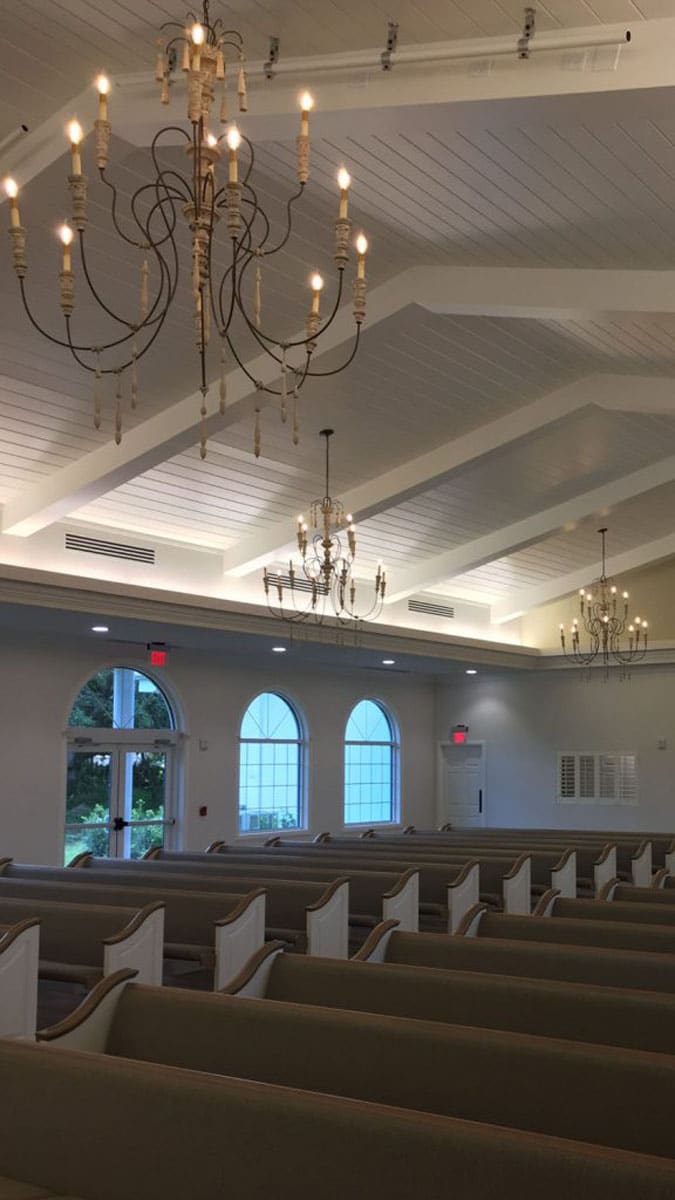 At just over 7,000 square feet, the Project consists of a 250 seat Chapel with T&G wood ceilings, exposed beams, porcelain tile floors, energy and sound efficient HVAC systems, LED lighting, and radius top, high performance, impact glazing which provide unrestricted views to the surrounding heavily treed site. Guests and visitors access the chapel over decorative pavers and enter through a pair of 10 foot tall, arch top, Honduras mahogany doors. Support spaces include bride’s suite with dressing/prep room, private “reveal” room and restroom, groom’s suite with private restroom, conference suite, and entry lounge all designed to help make that “special day” a memorable one. The facility is also used for overflow Sunday Worship and has incorporated high end audio, video and lighting control systems to enhance the worship and teaching experiences.