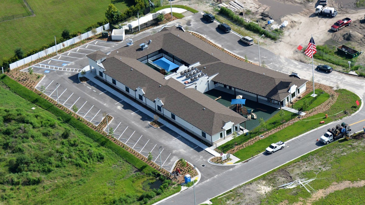 At just over 10,000 square feet, the Owner desired a unique design to meet the growing need for learning academy/daycare space in the Trinity area of Pasco County. The U-shape building includes two, secured outdoor play areas surrounded on three sides by classroom and support space. All classrooms are accessed by a covered walkway and are connected by a catering kitchen, secure entry for drop-off/pick-up and administrative offices.