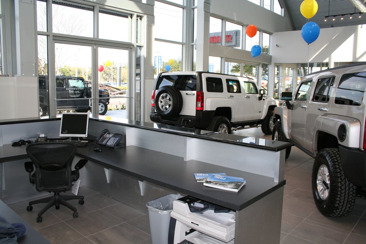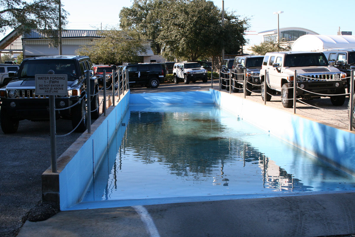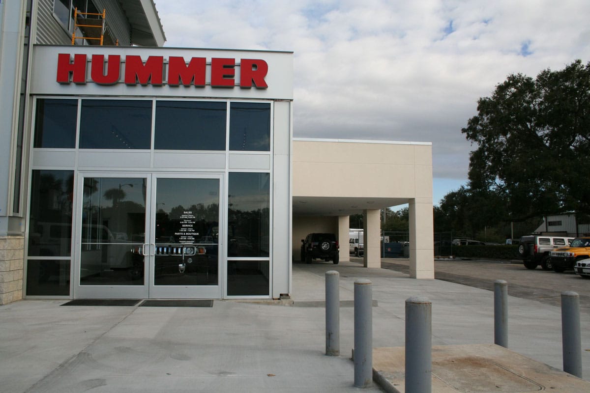 The scope of work for 17,500 square foot dealership, notable for its striking exterior design, included a new showroom and parts building and major renovation of the service center and administrative offices of the former Volkswagen dealership previously located on this parcel. DeLotto also constructed a Hummer Test Track adjacent to the facility that included a water pool and concrete hill designed to demonstrate the agility and ground clearance of the Hummer brand.