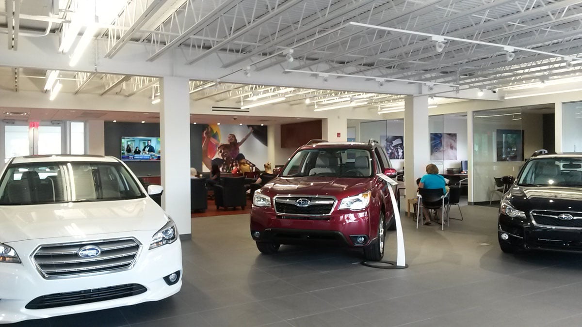 exterior perimeter, constructing a new showroom, service writers and parts area and a Business Development Center on the second level of building to comply with the new Subaru Image Program.