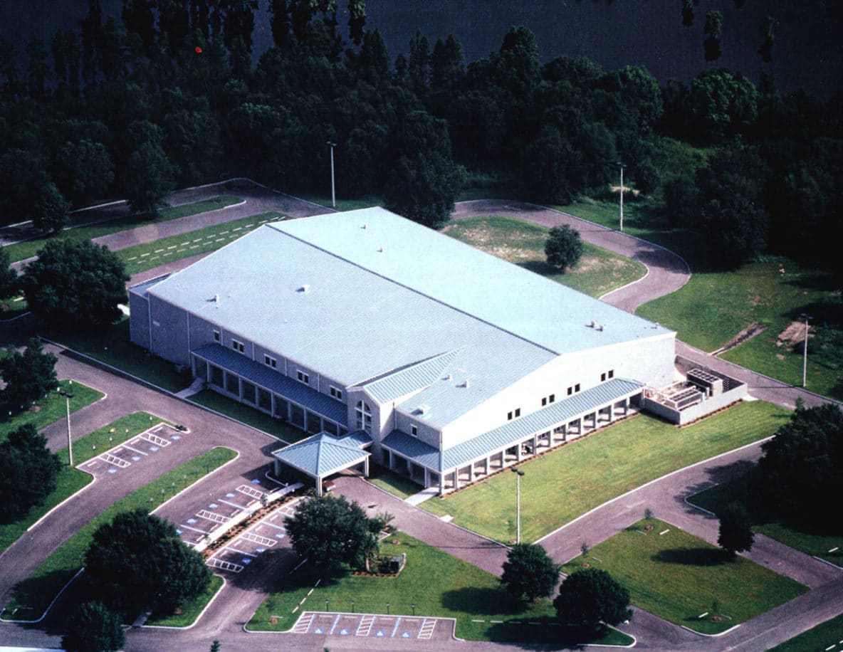 The 70,000 square foot facility is a new, ground-up building formerly housing both the Church and School. Originally located near Busch Gardens this new facility includes a 1,600 seat sanctuary with balcony wrapped by two-story education classrooms, preschool classrooms, youth meeting rooms, administrative offices, fellowship hall, a full-service kitchen and basement storage. The building sits on a large piece of property fronting the Hillsborough River and is designed to accommodate the sloping site which drops 20 feet in elevation from the south side of the structure to the river.