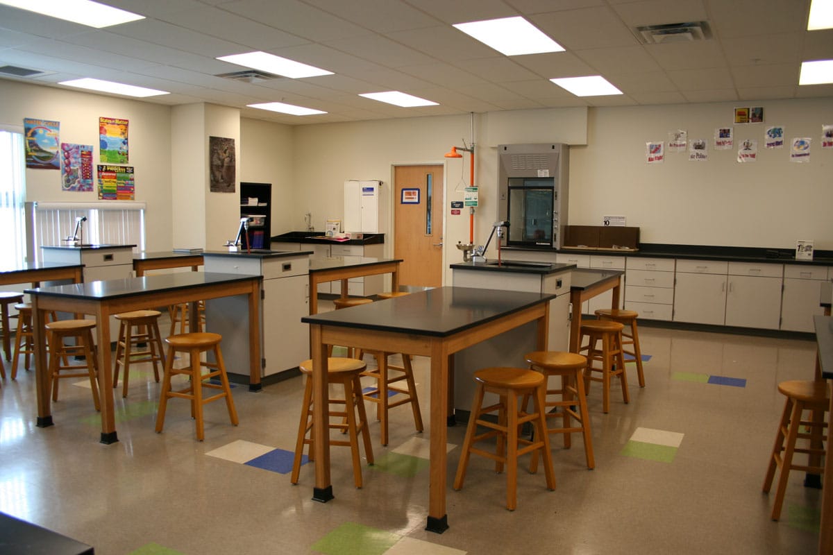 The campus, which encompasses two city blocks, consists of a two-story elementary school building with administrative offices and a media center which serves both the elementary school and the middle school students; a single story cafeteria building; and a middle school classroom building which is elevated to provide a covered play area and covered spaces for student drop-off/pickup. The design also includes a rooftop art classroom and a dance studio.