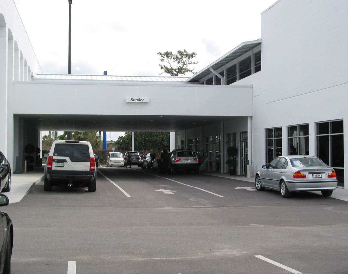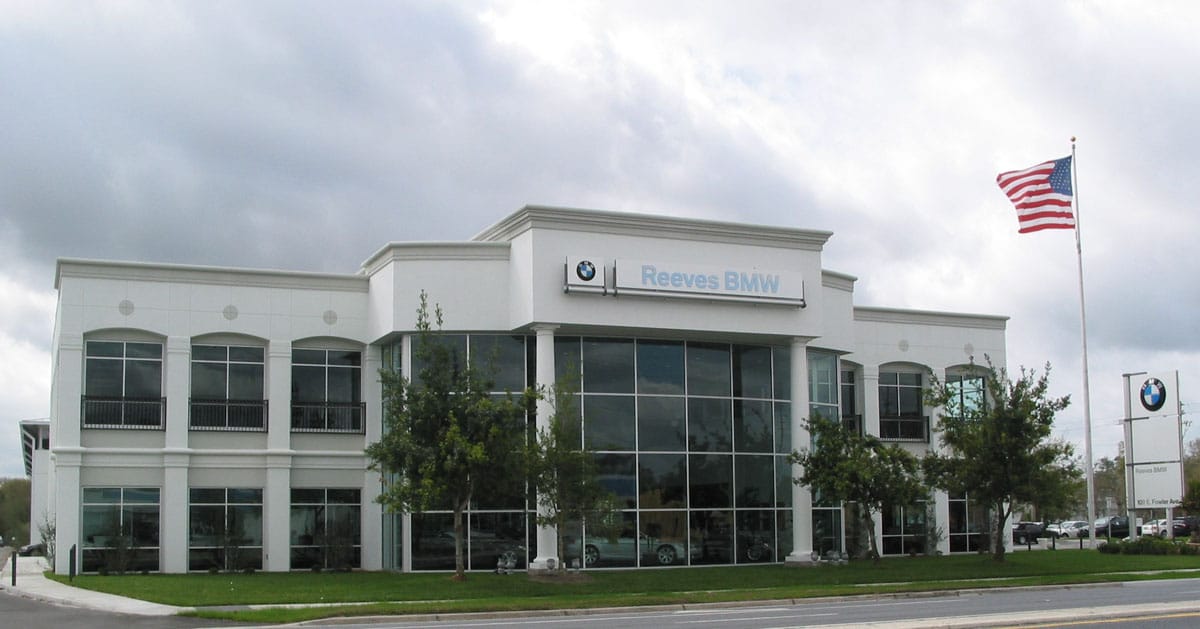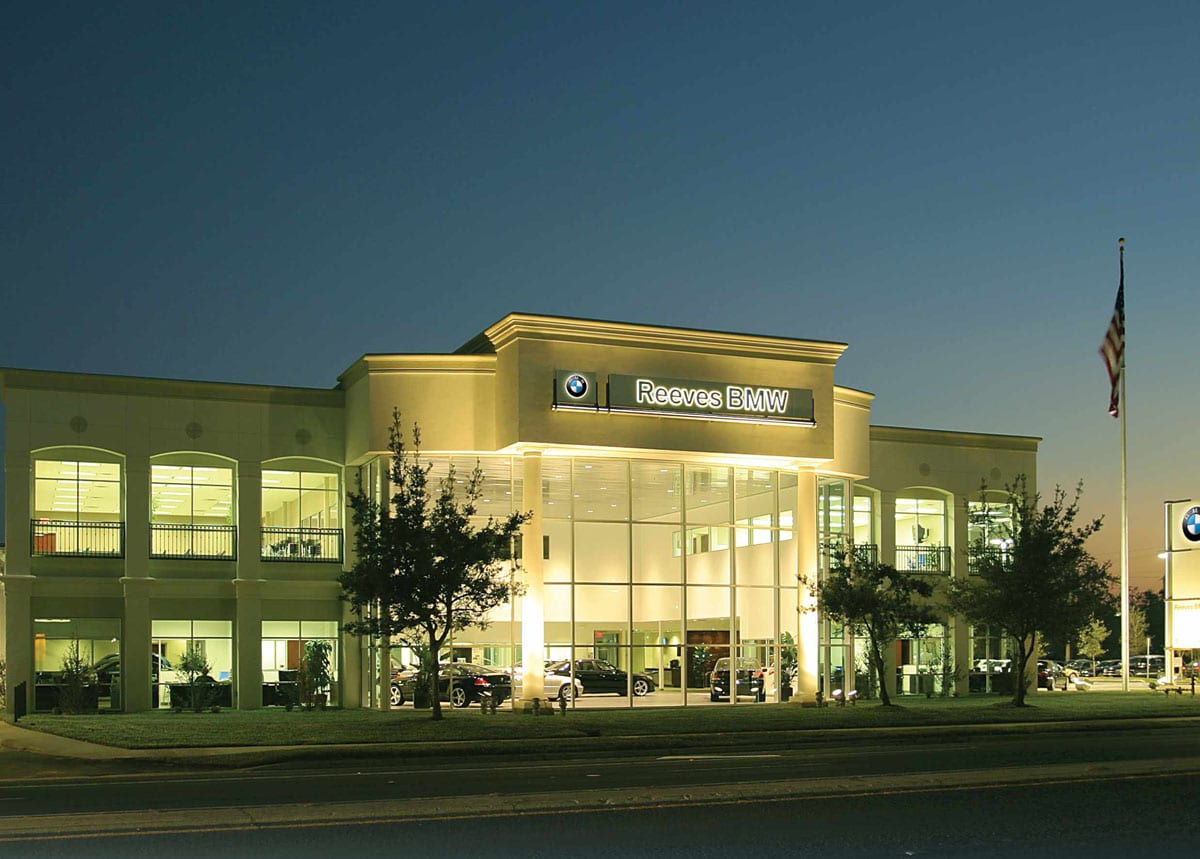 Constructed on a four-acre site, Reeves is one of the largest BMW dealerships in the Southeast and one of the highest tech auto dealership in the country. This 89,000 square foot auto dealership includes two buildings – a two-story Sales Building and a Service and Parts Building with a second floor covered vehicle inventory storage and a vehicle elevator.