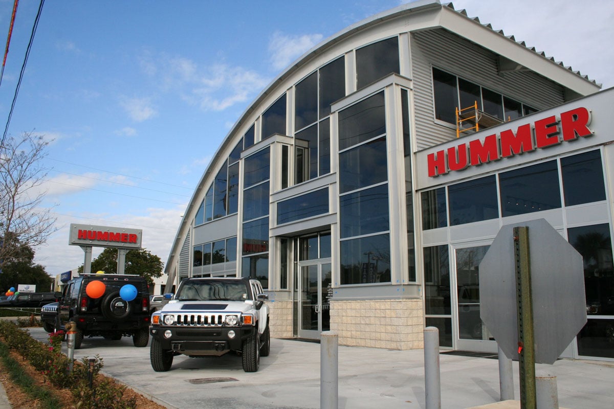 The scope of work for 17,500 square foot dealership, notable for its striking exterior design, included a new showroom and parts building and major renovation of the service center and administrative offices of the former Volkswagen dealership previously located on this parcel. DeLotto also constructed a Hummer Test Track adjacent to the facility that included a water pool and concrete hill designed to demonstrate the agility and ground clearance of the Hummer brand.