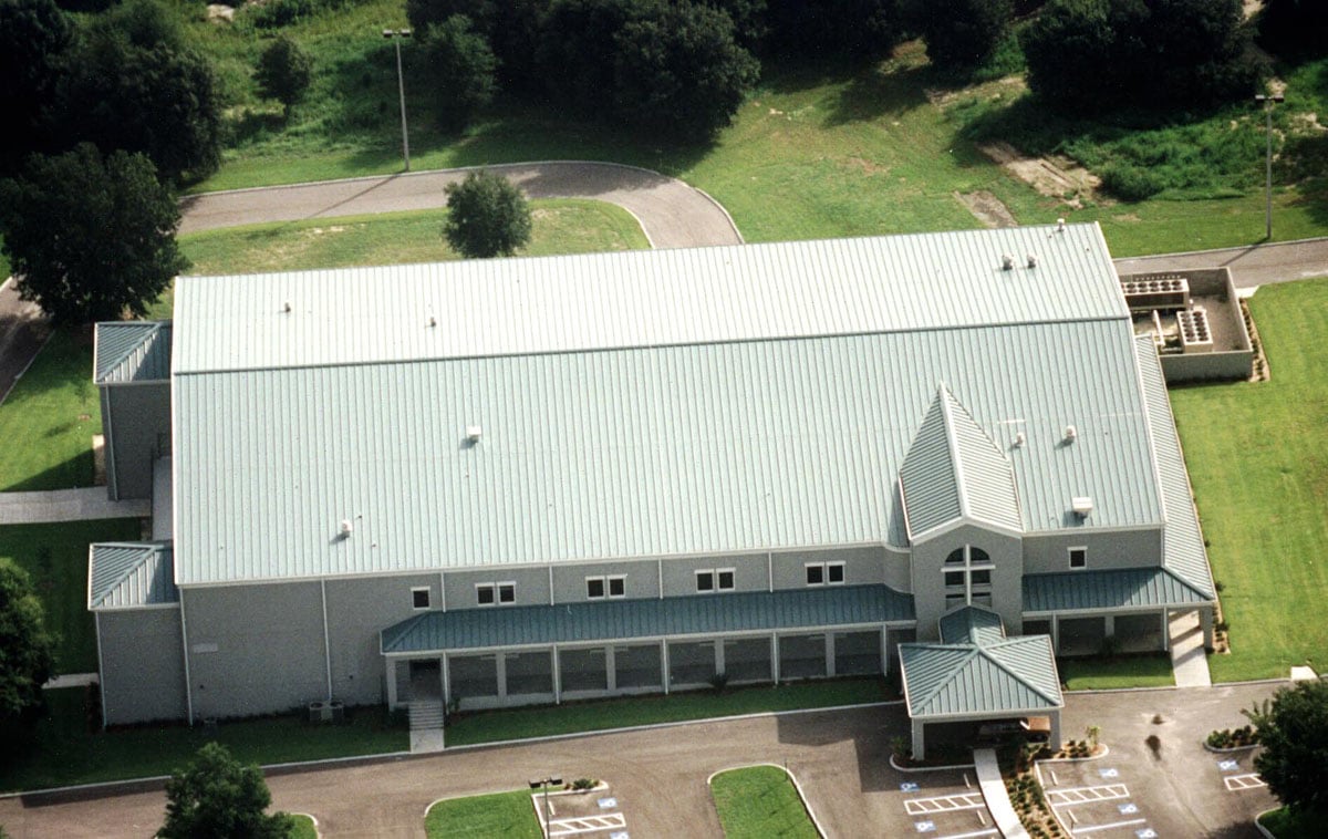 The 70,000 square foot facility is a new, ground-up building formerly housing both the Church and School. Originally located near Busch Gardens this new facility includes a 1,600 seat sanctuary with balcony wrapped by two-story education classrooms, preschool classrooms, youth meeting rooms, administrative offices, fellowship hall, a full-service kitchen and basement storage. The building sits on a large piece of property fronting the Hillsborough River and is designed to accommodate the sloping site which drops 20 feet in elevation from the south side of the structure to the river.